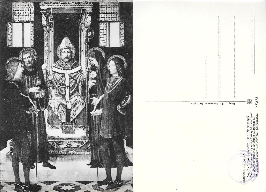 S. Ambrogio fra quattro Santi (Borgognone). Certosa di Pavia. Non viaggiata
