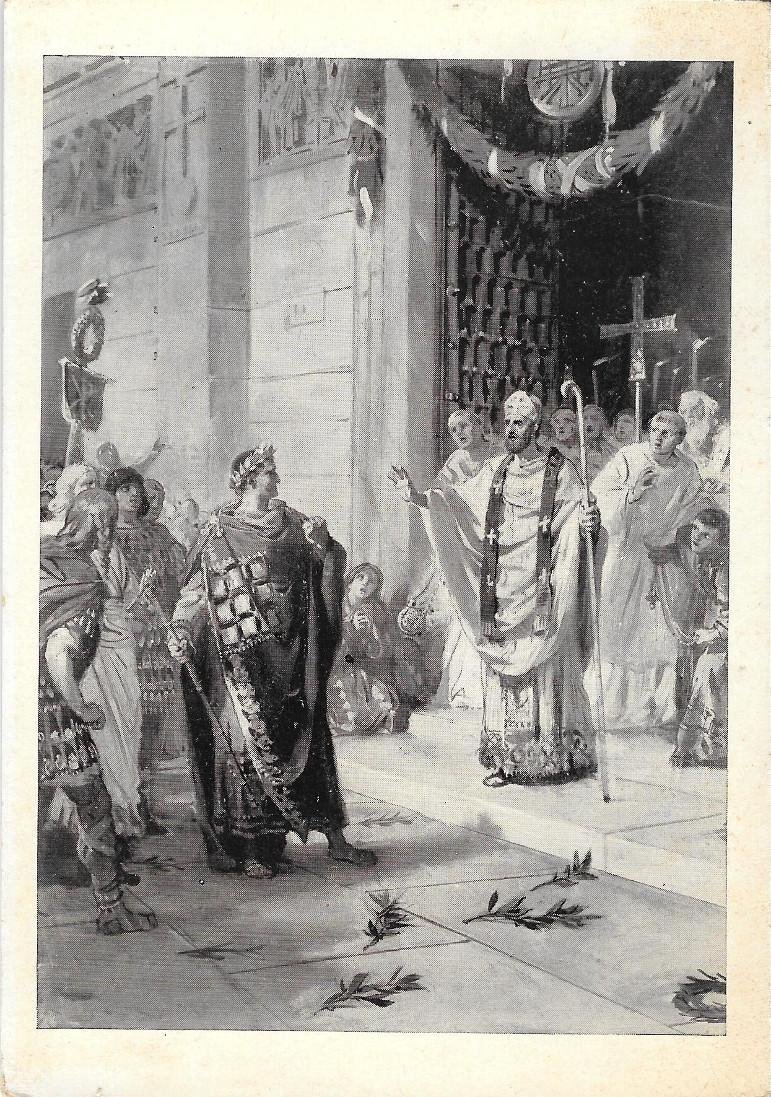 S. Ambrogio respinge Teodosio dal Tempio ( Poliaghi). Non viaggiata