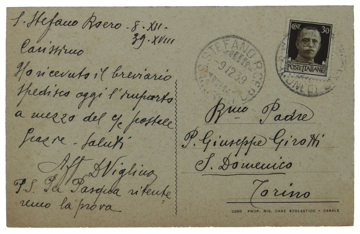 S.STEFANO ROERO - MONUMENTO AI CADUTI. Cartolina viaggiata 1939