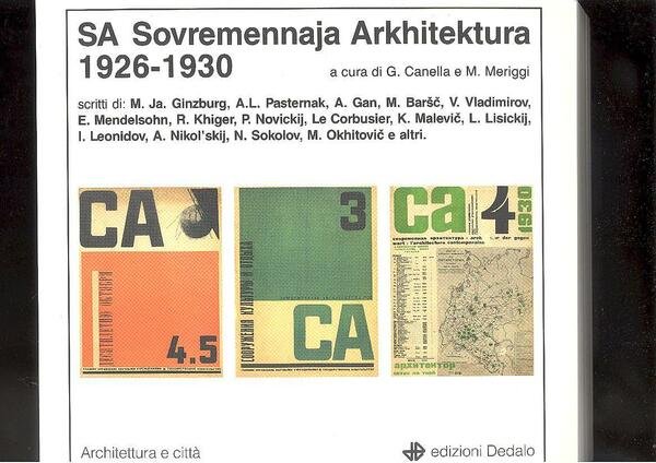 IN 8° CARRE ( cm.22 X 24 ), pp.609, INDICE. COPERTINA EDITORIALE ILLUSTRATA A COLORI CON TITOLO. VOLUME RICCAMENTE ILLUSTRATO in b/n. RACCOGLIE IN ITALIANO UN'AMPIA ANTOLOGIA DI ARTICOLI DELLA RIVISTA " SA 1926 - 1930 ", ORGANO DELL'ASSOCIAZIONE OSA, PRINCIPALE RAGGRUPPAMENTO DEL MOVIMENTO COSTRUTTIVISTA DELL'AVANGUARDIA SOVIETICA. SCRITI DI JA, GINZBURG, PASTERNAK, GAN, BARSC, VLADIMIROV, MENDELSOHN, KHIGER, NOVICKIJ, LE CORBUSIER, MALEVIC, LISICKIJ, LEONIDOV, NIKOL'SKIJ, SOKOLOV, OKHITOVIC E ALTRI. OPERA FACENTE PARTE DELLA COLLANA ARCHITETTURA IN CITTA, PUBBLICATO CON IL CONTRIBUTO DELLA FACOLTA DI ARCHITETTURA CIVILE DEL POLITECNICO DI MILANO. TRADUZIONE DI COSTANTINO DI PAOLA. STATO NUOVO. ID, 6649