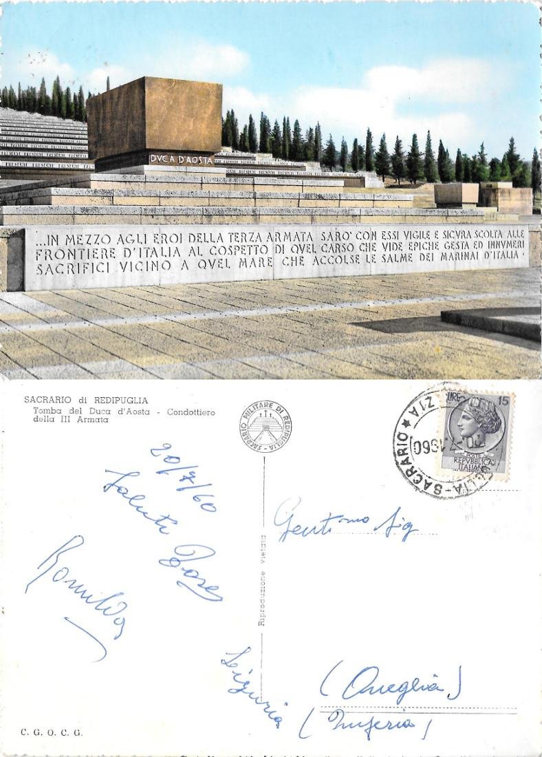 Sacrario di Redipuglia. Tomba del Duca d'Aosta. Viaggiata 1960