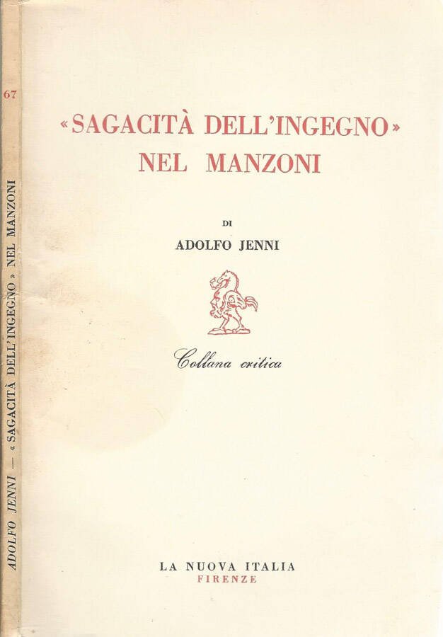 Numero "67" della collana "Collana critica". La copertina, in cartoncino morbido, illustrata e leggermente ingiallita dal tempo, presenta lievi segni di usura ai margini e sporadiche, leggere, macchioline marroni ai piatti. Pagine fruibili anche se lievemente brunite, sopratutto ai tagli; bordi a barbe lievemente logorati. Piccole scritte a matita alla pagina di guardia e rare, occasionali, evidenziature di margine e matita. Numero pagine 67.