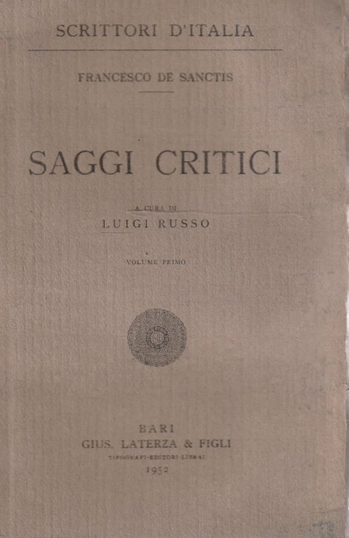 Saggi critici di Francesco De Sanctis a cura di Luigi Russo Volume 1