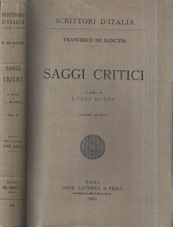 Disponibile il volume II ( 2 ). Brossura in cartoncino flessibile, copertina velata da polvere. Buono lo stato di conservazione, pagine ben tenute, ossidate da tonalità brunita, così come i tagli, non rifilati. A cura di Luigi Russo. Volume n. CCIV ( 204 ) della collana. Numero pagine 358.