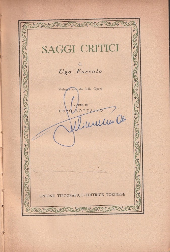 Volume n.  76 della Collezione U.T.E.T. „Classici Italiani“, a cura di Enzo Bottasso,  in discrete condizioni, firma di appartenenza sulla prima pagina, margini delle pagine ingialliti, piccolissime macchie sulla costa inferiore