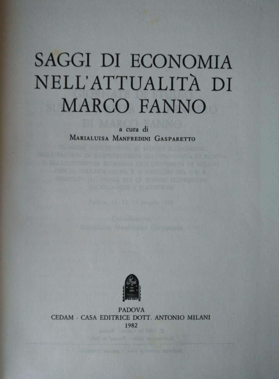 SAGGI DI ECONOMIA NELL'ATTUALITÀ DI MARCO FANNO