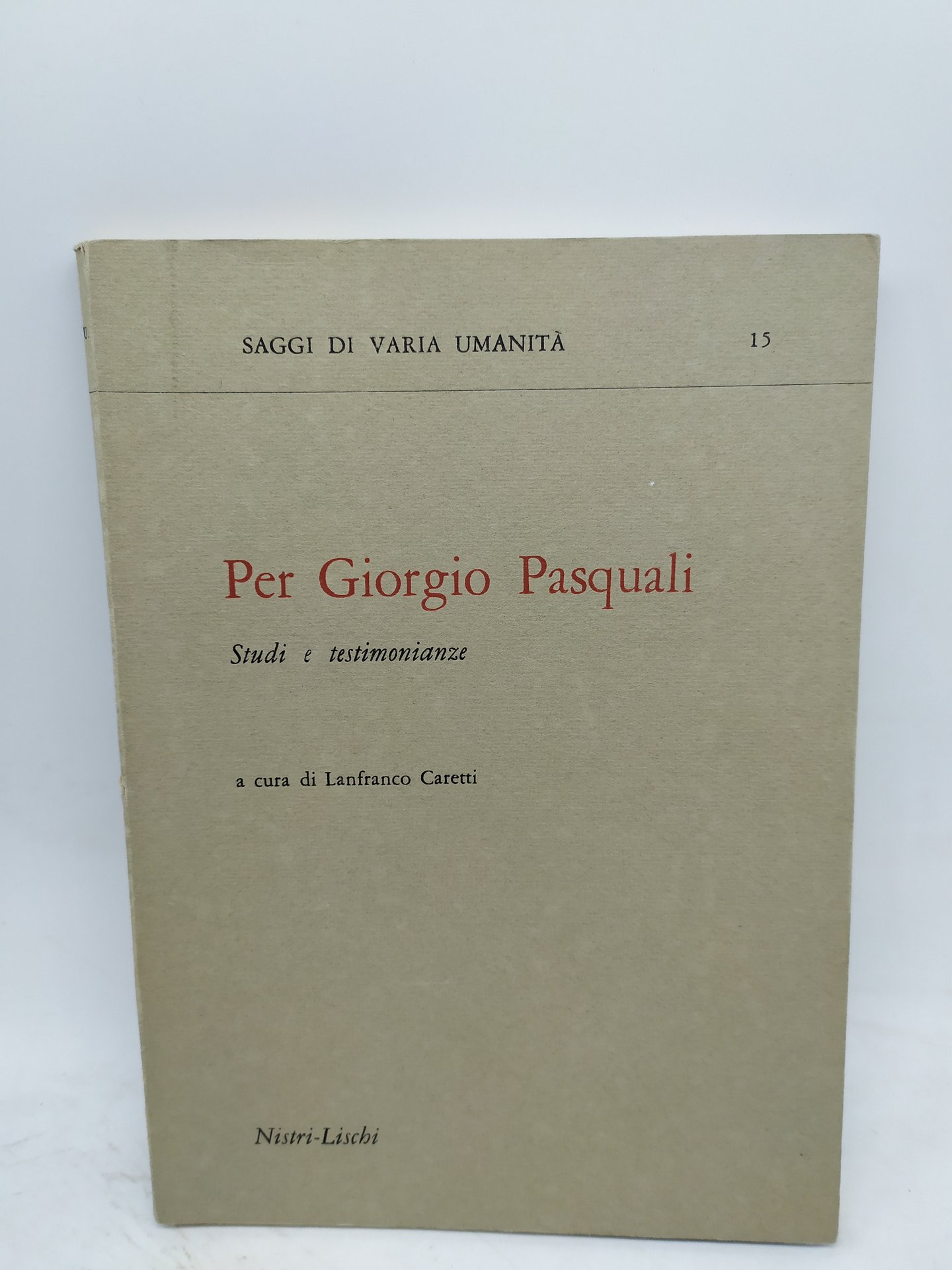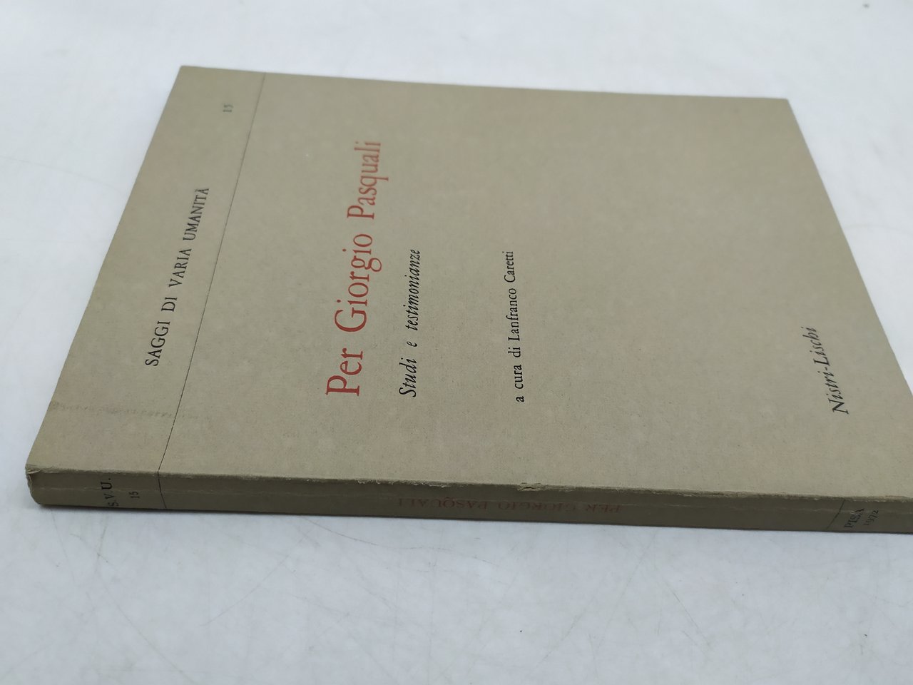 saggi di varia umanita' per giorgio pasquali studi e testimonianze lanfanco caretti . , 1972 italiano, pp.183 ^^brossura