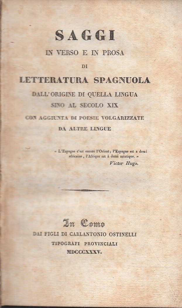 Saggi in verso e in prosa di letteratura spagnola dall'origine di quella lingua sino al secolo XIX