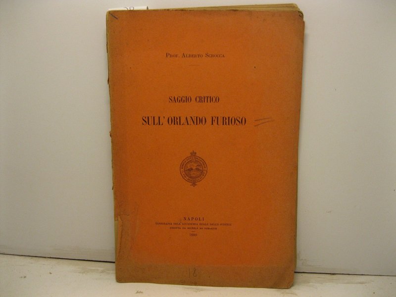 In 8, pp. 73 + (1b). Dedica autogr. dell'A. al p. ant. D. rifatto. Br. ed. L'A., letterato e studioso di Dante originario di Napoli, in quest'opera affronta uno studio critico sul Furioso.