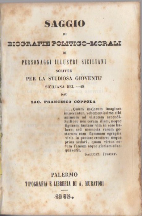 Saggio di biografie politico-morali di personaggi illustri siciliani: scritte per la studiosa gioventù siciliana del -48.