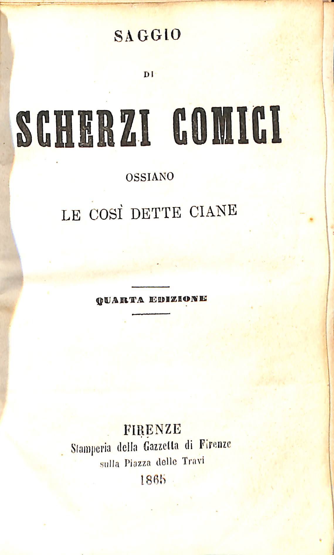 Saggio di scherzi comici, ossiano Le così dette ciane. 300 p. ; 16 cm. 852 - Ba Ottimo (Fine)