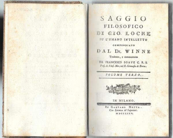 Saggio filosofico di Gio. Locke su l'umano intelletto compendiato dal Dr. Winne, tradotto e commentato da Francesco Soave, vol. 3°