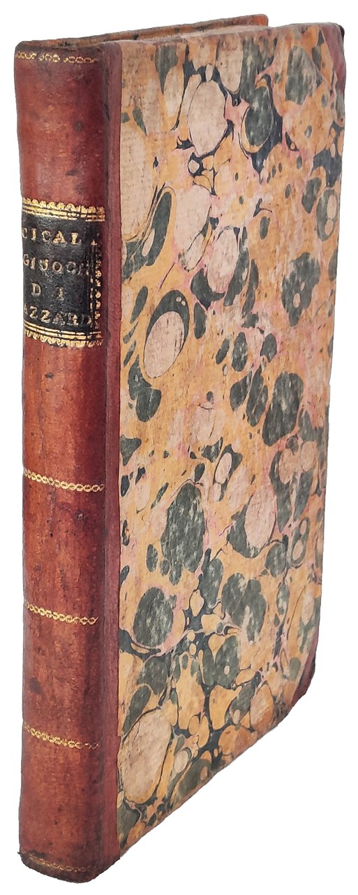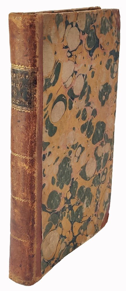 In 8vo (mm. 205x 127). Pp. VIII, 232, [4]. Prima carta bianca ma inclusa nella paginazione. Il nome dello stampatore si ricava dalla licenza di stampa che si trova alla fine del volume. Fregio tipografico al frontespizio. Testatina e finalini tipografici. Legatura coeva in mezzo vitellino nocciola con angoli, dorso con fregi e titolo in oro su tassello, piatti in carta marmorizzata, tagli picchiettati (minimi restauri al dorso e agl'angoli). Sul frontespizio iniziali manoscritte “N.C.”. Nota manoscritta coeva a p. 39. Fioriture sparse dovute alla qualità della carta, ma nel complesso buona copia genuina.