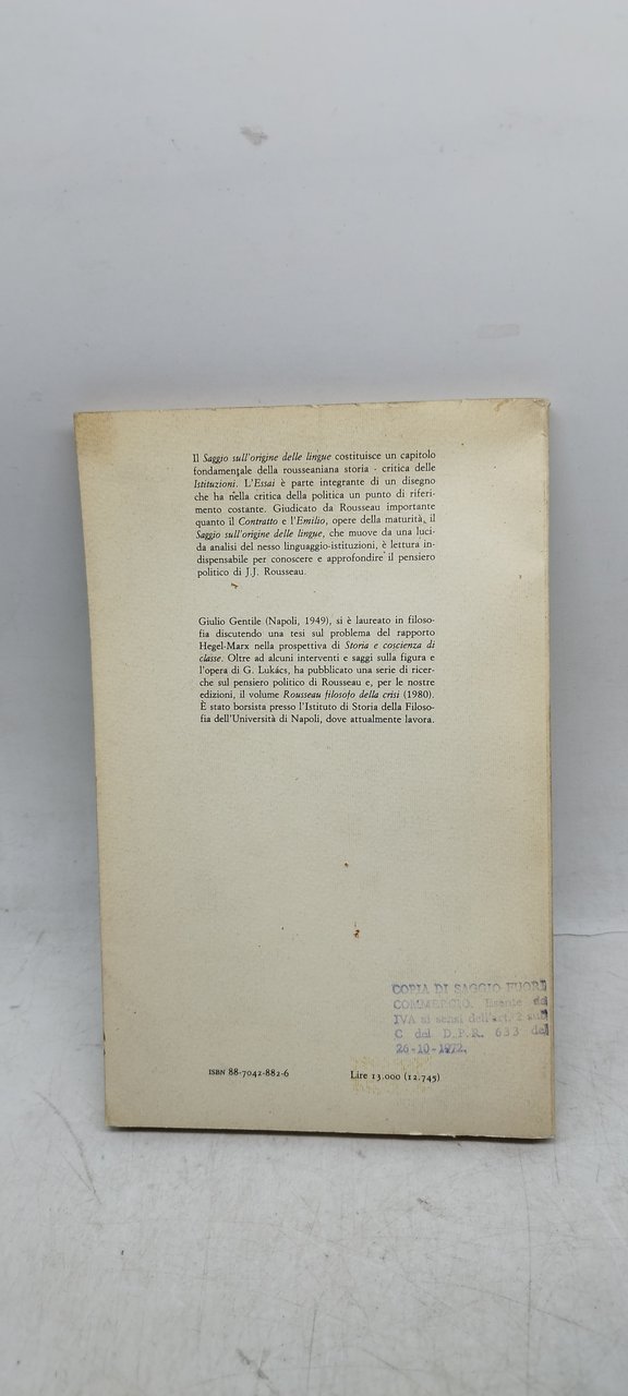 saggio sull'origine delle lingue rousseau guida editori . , 1984 italiano, pp.128 ^^^