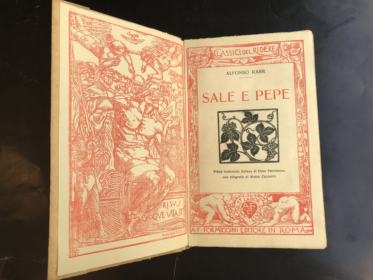 In-8°, pp. 373, brossura editoriale pergamenata con fregi di De Karolis. Prima traduzione italiana di Dino Provenzal con xilografie di Maria Ciccotti. Collezione 'Classici del ridere' n. 99
