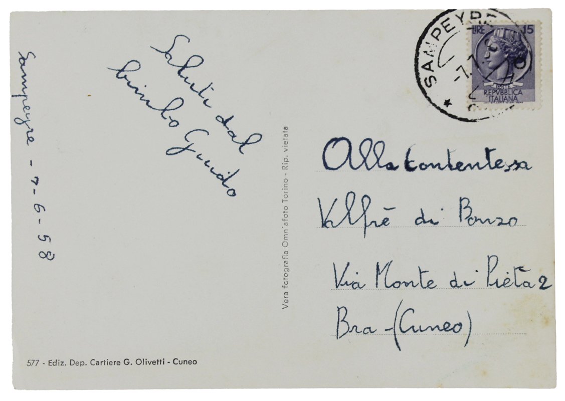 SAMPEIRE (Valle Varaita) Piazza della Vittorie - CARTOLINA del 1958 viaggiata in ottimo stato
