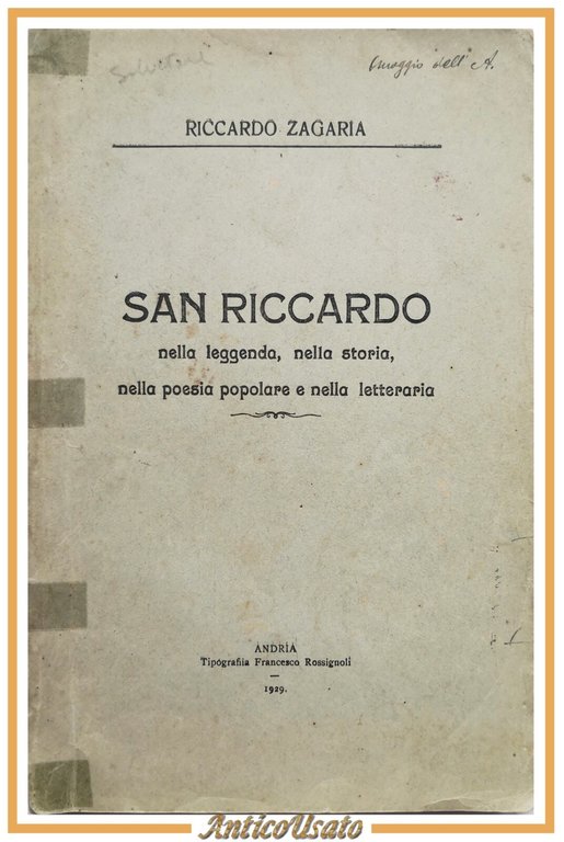 SAN RICCARDO nella leggenda storia e poesia di Zagaria 1929 Rossignoli Libro
