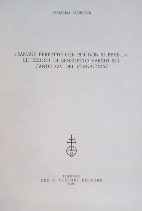 SANGUE PERFETTO CHE POI NON SI BEVE. - LE LEZIONI DI BENEDETTO VARCHI SUL CANTO XXV DEL PURGATORIO - ESTRATTO DA "RINASCIMENTO", SECONDA SERIE, VOLUME XLIV
