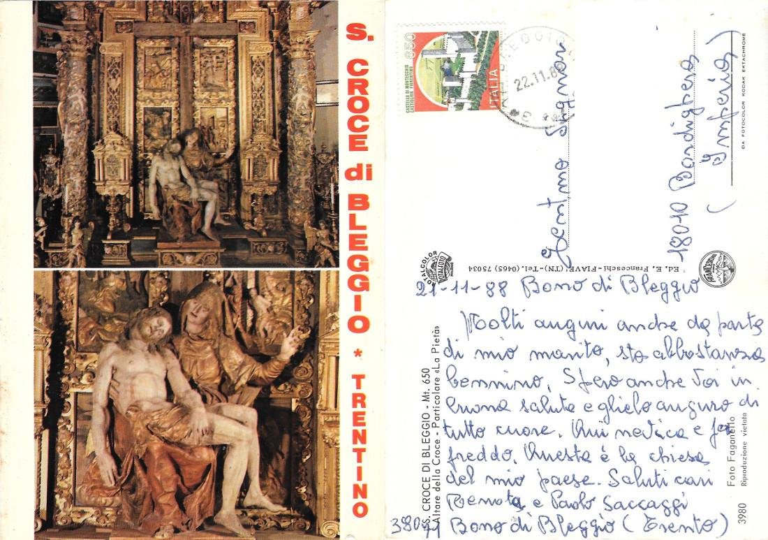 Santa Croce di Bleggio (TN). Altare della Croce. Viaggiata 1988