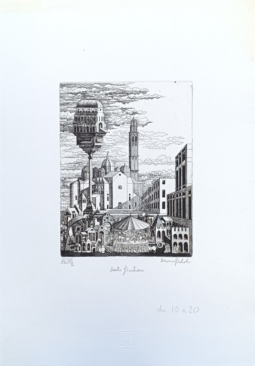 Tiratura XLIV/L. Timbro a secco e titolo in matita in basso al centro. acquaforte Inciso cm. 17,6 x 23,8 - foglio cm. 35 x 49,5 Buono (Good) Buon es..