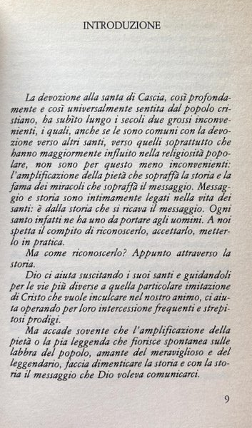In questo libro l'autore, noto studioso e storico, recupera dalle fonti le poche ma autentiche notizie storiche e valorizza le leggende tradizionali sulla vita di santa Rita. Egli riesce così ad ancorare saldamente al mistero di Cristo e della Chiesa una devozione tanto popolare e universale.