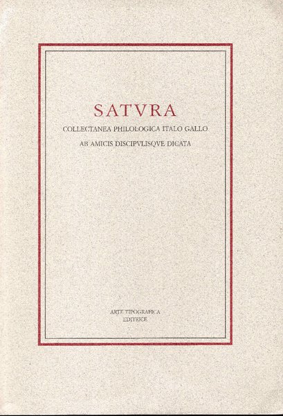 Satura. Collectanea Philologica Italo Gallo Ab Amcis Discipulisque Dicata
