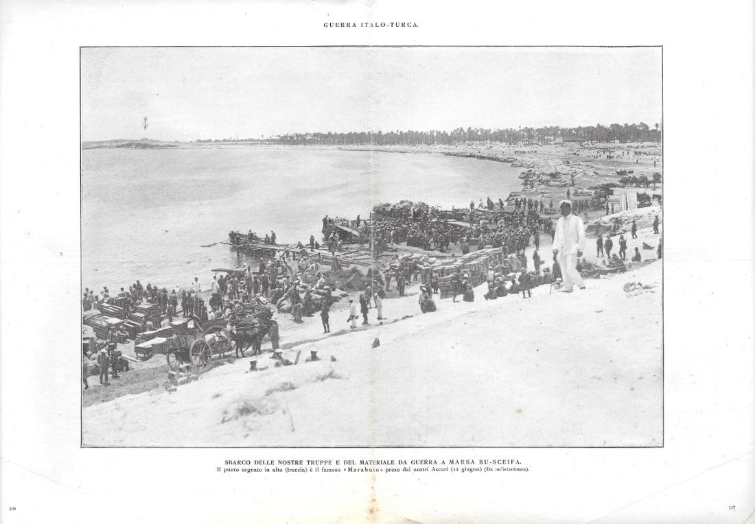 Sbarco a Marsa Bu-Sceifa / Gli italiani scacciati da Costantinopoli. Stampa 1912