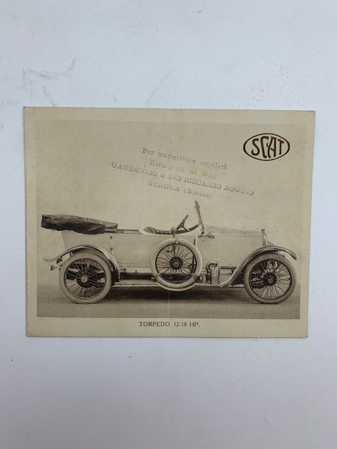 Pieghevole a 2 falde cm 18,5 x 15, immagine dell'automobile al piatto anteriore, del motore al recto e descrizione della vettura nelle sue caratteristiche tecniche. Rara brochure pubblicitaria, testimonianza della prima fase di produzione di questa importante fabbrica d'automobili torinese, sorta nel 1906 ad opera di Giovanni Ceirano. Successivamente vinse per tre volte la Targa Florio. Nel 1929 sara' assorbita dalla Fiat.