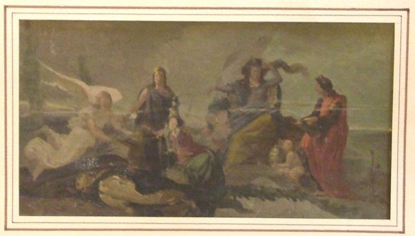 Olio su tela di cm. 18 x 32. Bozzetto per soffitto. Piccoli difetti.