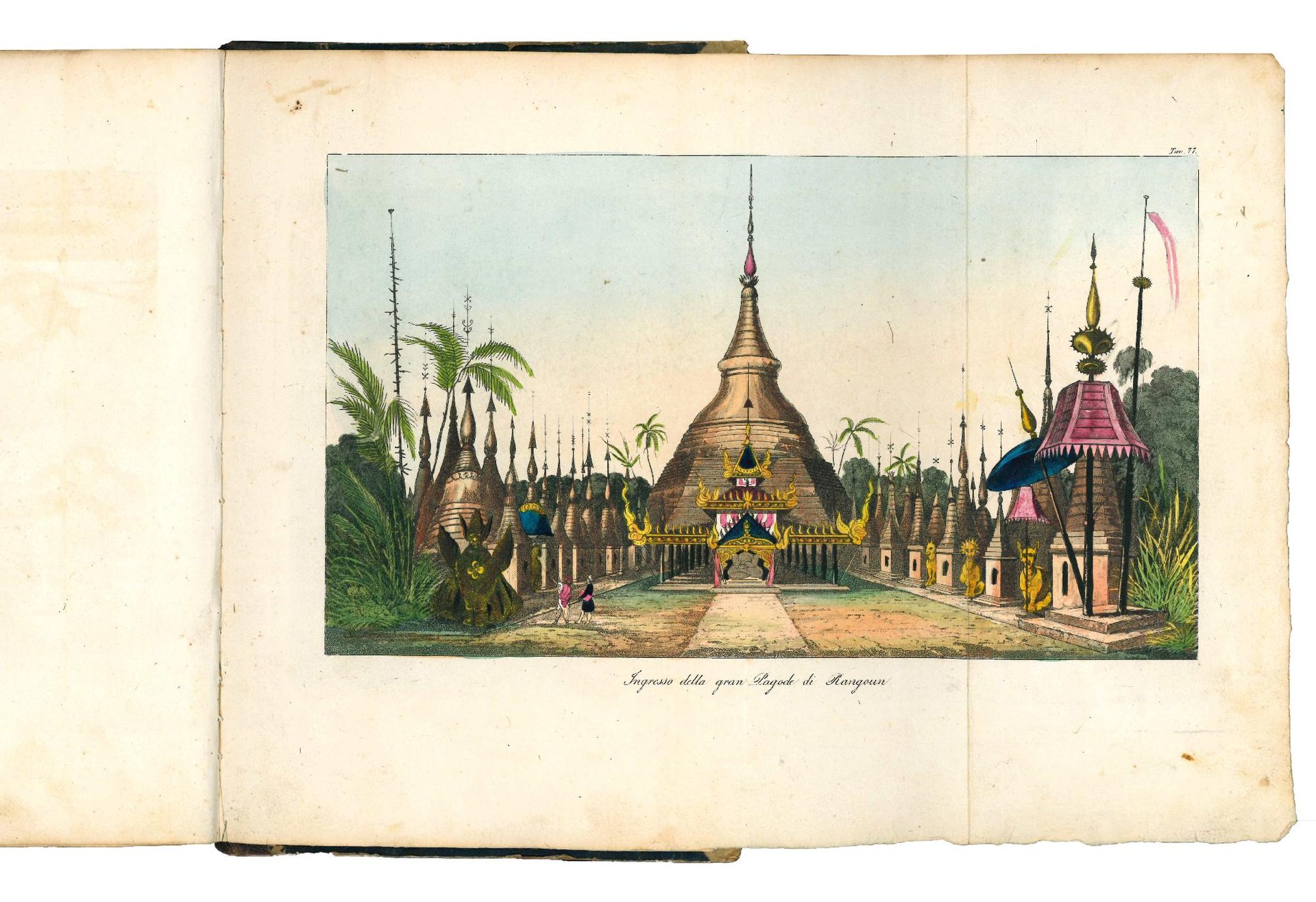 In 8vo (mm 218x138); pp. 87, [3], 86 c. di tav. fuori testo, di cui 2 ripiegate. Occhietto, monogramma dell'editore al frontespizio, 86 graziose incisioni acquerellate. Lievi fioriture diffuse e leggeri aloni marginali. Strappo e mancanze all'occhietto. Mezza pelle coeva con titolo e filetti in oro al dorso. Piatti rivestiti con carta colorata. Abrasioni al dosro e ai piatti. Un po' sciolto.