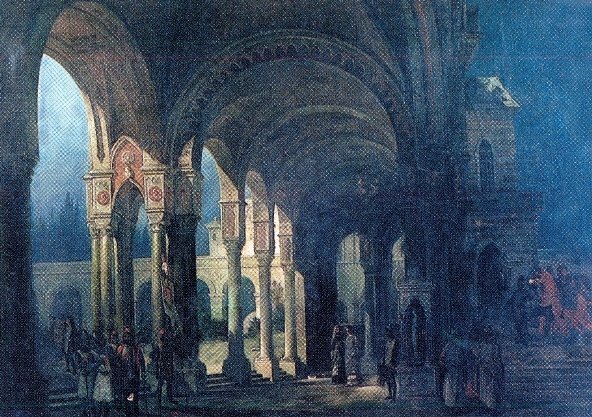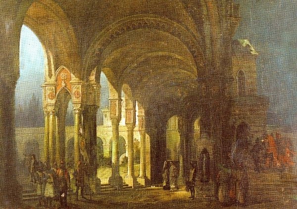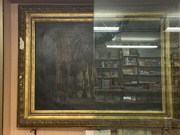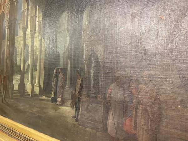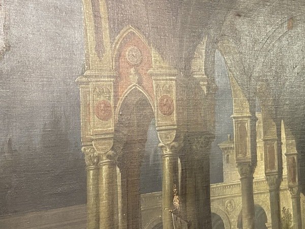 Olio su tela in cornice dorata coeva. Misura della tela cm. 100 x 150 , misura con cornice cm. 135 x 180. Dipinto da un'allievo del Migliara Giovanni ( molto probabilmente da Pompeo Calvi).