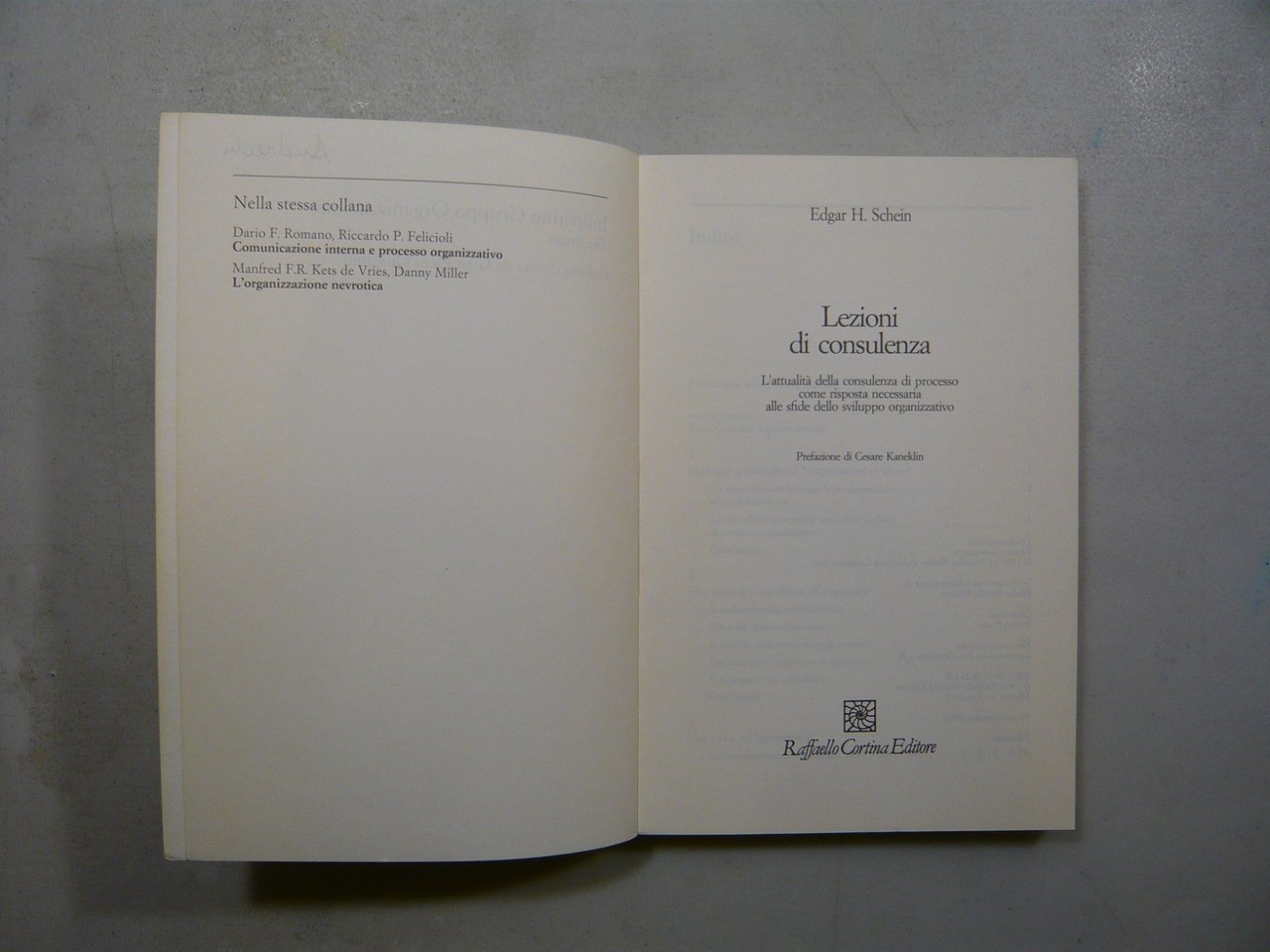 Edgar H. ScheinLEZIONI DI CONSULENZAL’attualità della consulenza di processo come risposta necessaria alle sfide dello sviluppo organizzativo.Cortina, Milano, 1992Collana diretta da Gian Piero Quaglino. Individuo gruppo organizzazione. Theatrum Brossura, 22x14,5 cm, pp. 196Peso: g. 327Cod: 4165CONDIZIONI DEL LIBRO:Buone condizioni, sottolineature a matita Pagine leggermente ingiallite.