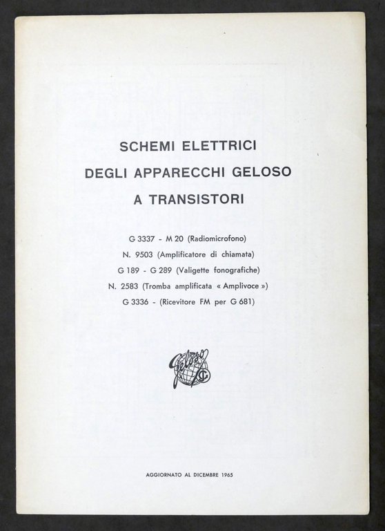 Schemi Elettrici Radioricevitori Geloso a Transistori G 3337 - N 9503 - ed. 1965