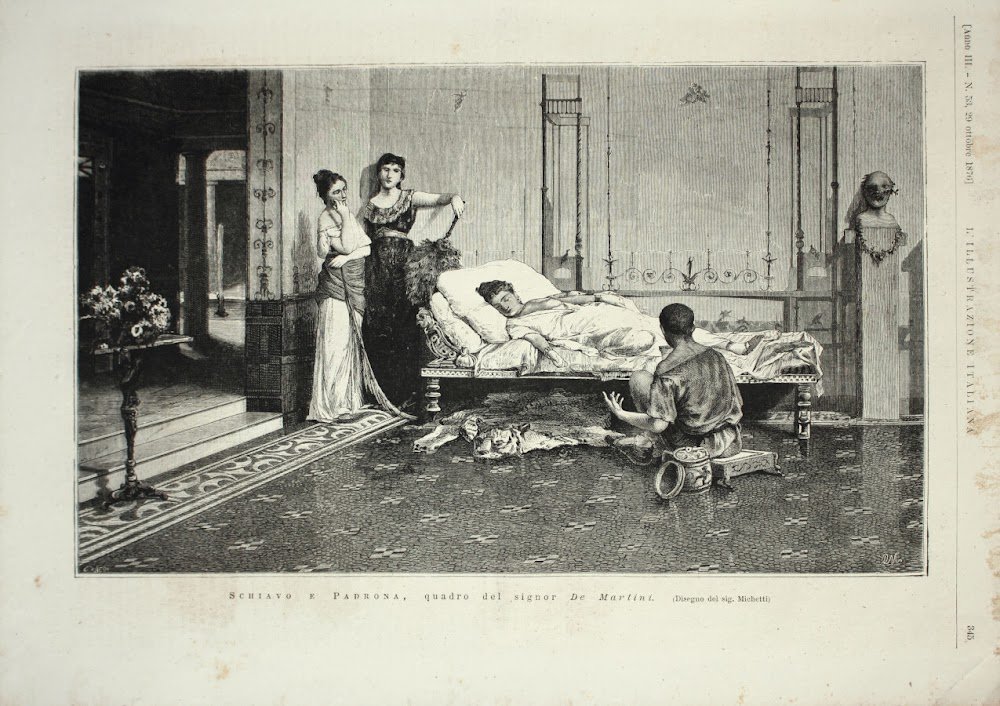 Schiavo e padrona da un dipinto di De Martini. Stampa 1876.