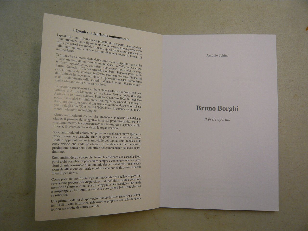 Antonio Schina,prefazione di Marta Margotti,BRUNO BORGHI: il prete operaio.Collana: "I quaderni dell'Italia ANTIMODERATA - n.7".Centro di Documentazione Editrice, Pistoia, 2017,Copertina flessibile, 21x14,5cm, pp.126,con immagini e foto a colori e in bianco e nero,Peso: g. 192cod 8221CONDIZIONI DEL LIBRO: ottime condizioni, praticamente come nuovo.