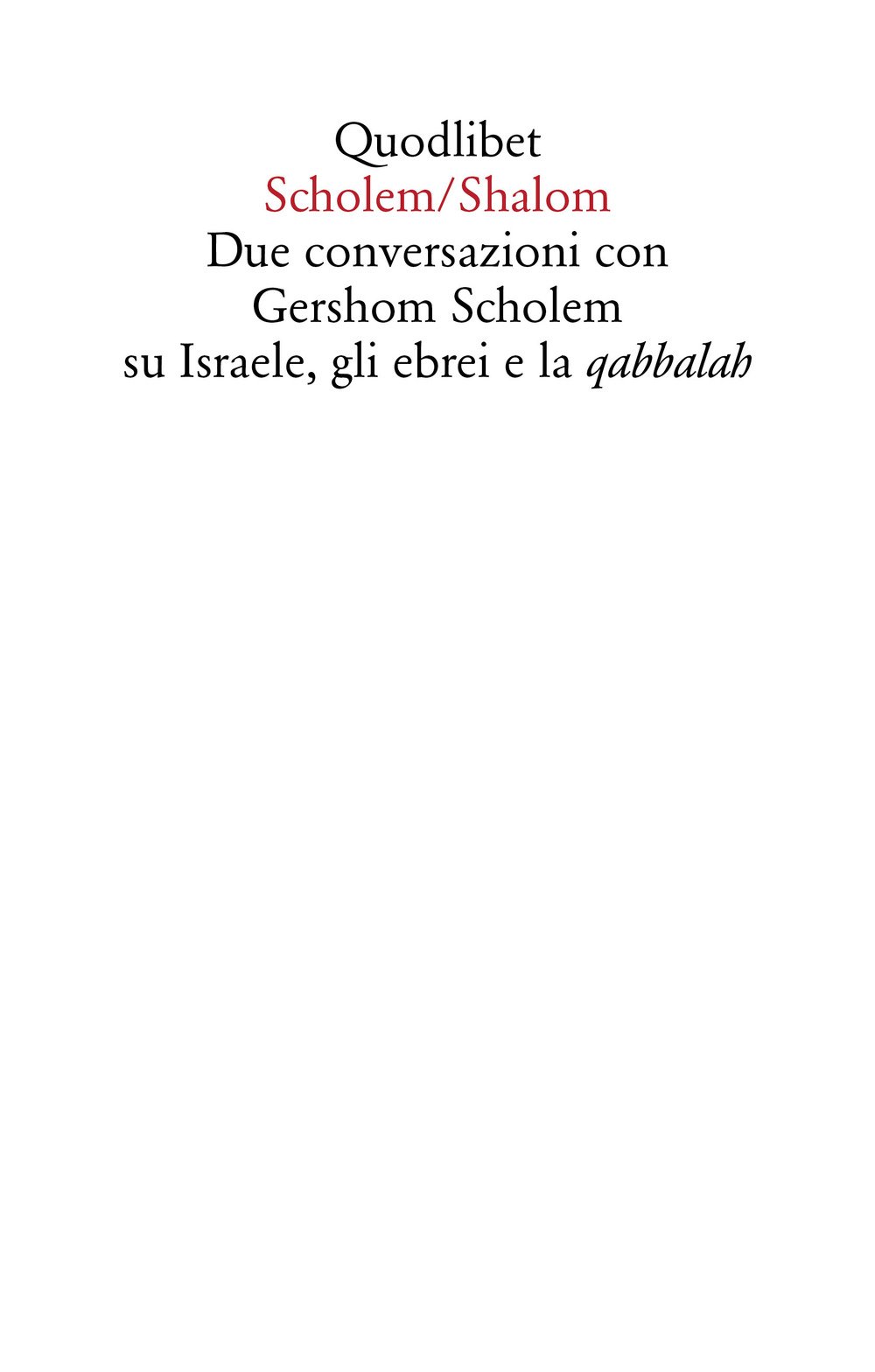 Scholem/Shalom. Due conversazioni con Gershom Scholem su Israele, gli ebrei e la qabbalah