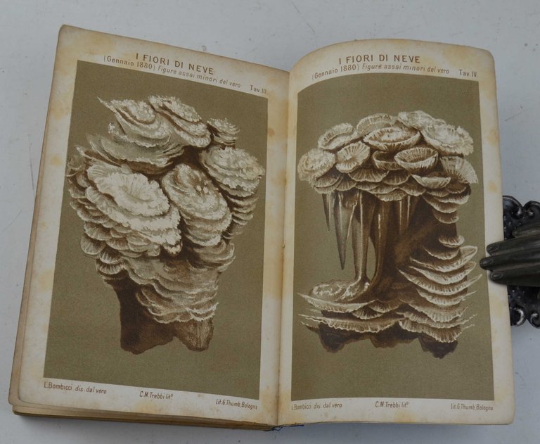 Cm. 19, pp. (2) 196 (4). Con 5 belle tavole ltografiche f.t. in fine raffiguranti i fiori di neve. Bross. edit. con rinforzo recente al dorso, peraltro buona conservazione. Dall'indice: La storia di un sasso; Una escursione in Italia; L'origine delle montagne; I terremoti; I terremoti di Bologna; I grandi e mirabili fiori di neve.