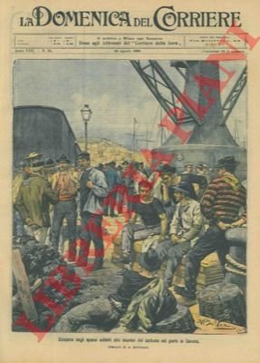 Sciopero degli operai addetti allo scarico del carbone nel porto di Savona.