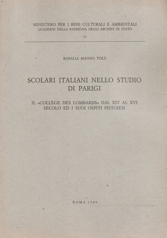 Scolari italiani nello Studio di Parigi : il "Collège des Lombards" dal XIV al XVI secolo ed i suoi ospiti pistoiesi