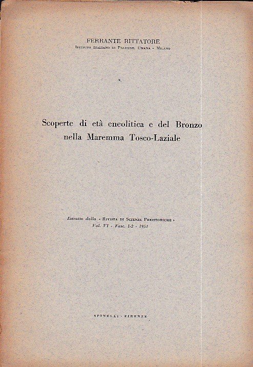 Scoperte di età eneolitica e del Bronzo nella Maremma Tosco - Laziale. Estratto dalla 'Rivista di Scienze Preistoriche' vol. VI - Fasc. 1 - 2 1951