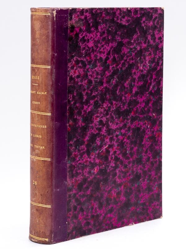 Ex. commentariis omnium perfectissimis ubique habitis, et a magna parte episcoporum necnon theologorum europe catholicae, universim ad hoc interrogatorum, designatis, unicè conflatus, plurimis annotantibus presbyteris ad docendo levitas pascendove populos altè positis. Annotavit vero simul et edidit J.P. Migne, 1 vol. in-4 reliure demi-basane bordeaux, Apud Editores, 1852, 1236 pp. Contient : Tome 26 :Wouters, Martin : Dilucidationes in libros Genesis, Exodi, Levitici, Numerorum, Deteronomii, Josue, Judicum, Ruth, Regum, Paralipomenon, esdrae, Judit, Esther et Macchabaeorum Tome 26 seul. Agréable exemplaire de bibliothèque (anciens cachets d'institution religieuse et étiquette de cote en garde, bon exemplaire par ailleurs).