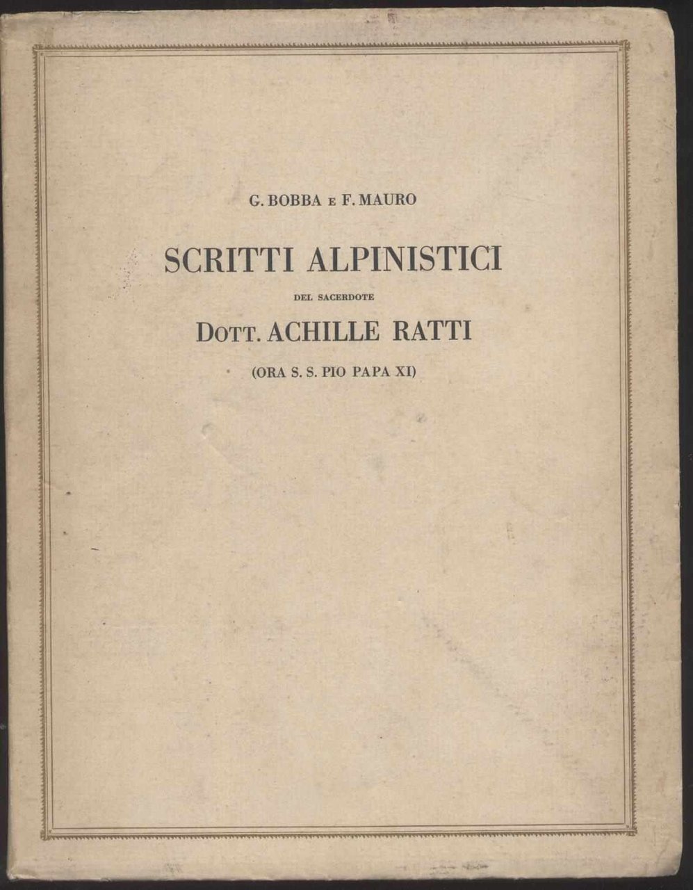 Scritti alpinistici del Sacerdote Dott. Achille Ratti (Ora S. S. Pio Papa XI)