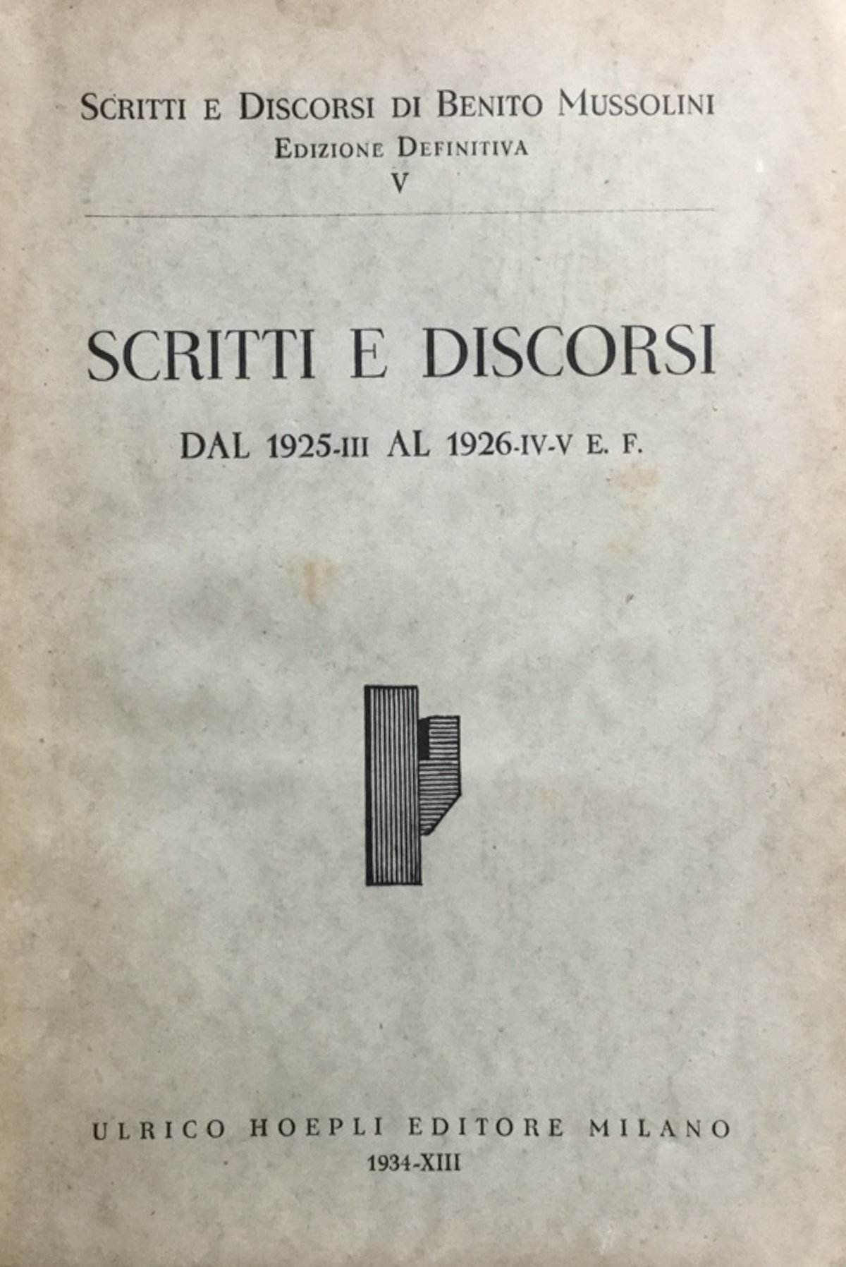 Scritti e discorsi dal 1925-III al 1926-IV-V E. F.