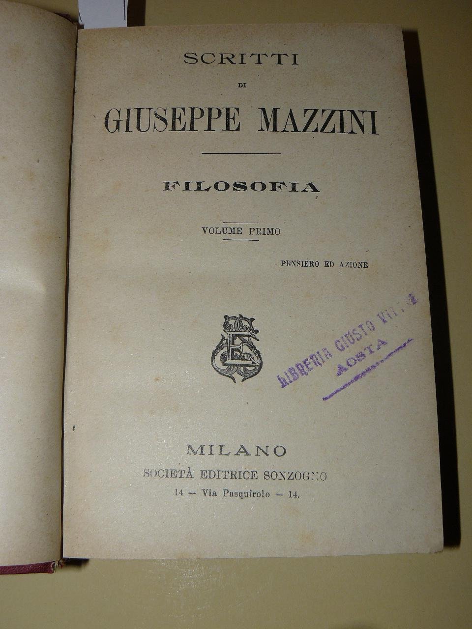 Due volumi in-16°, pp. 299, (4), 279, (3), legatura in mezza tela con titolo in oro al dorso. Al frontespizio timbro di una libreria di Aosta.