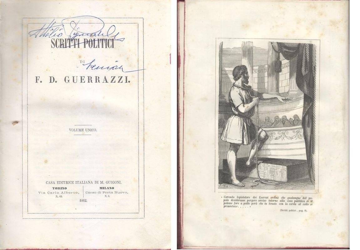 SCRITTI POLITICI di F D Guerrazzi 1862 Guigoni con incisione libro antico