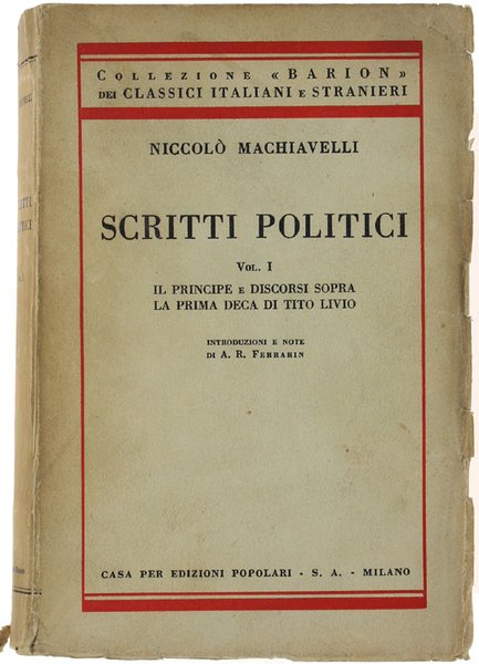 SCRITTI POLITICI. Volume I: IL PRINCIPE e DISCORSI SOPRA LA PRIMA DECA DI TITO LIVIO.