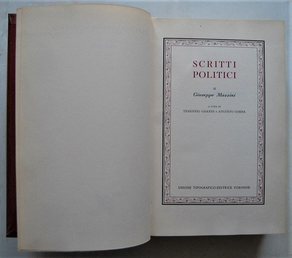 Utet, 1972. In-8, tela editoriale, sovracoperta in acetato, pp. 1139, con tavole in bianco e nero fuori testo. A cura di Terenzio Grandi Comba Augusto. Collana Classici della Politica. In ottimo stato
