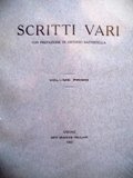 PRIMA EDIZIONE in due volumi con prefazione di Antonio Battistella. Nato a Udine nel 1843, laureato in giurisprudenza, nel 1878 B. iniziò a lavorare presso il comune di Udine, dove fu funzionario responsabile della sezione anagrafe fino al pensionamento nel 1904. Accompagnò il lavoro di ufficio a studi sulla statistica della popolazione, a ricerche sulla natalità. Per i suoi lavori si avvalse dei censimenti ufficiali, per i quali dette anche indicazioni su come trascrivere nomi di famiglia e toponimi, allargando la sua indagine agli archivi parrocchiali. La presente pubblicazione edita a cura dell'Accademia, assolve ad una disposizione testamentaria lasciata dal Braidotti divulgando tutti i suoi scritti come omaggio sentito al loro autore. Dall'indice: Nuove ricerche sulla natalità ed in ispecie sulla sessualità dei nati nella popolazione di Udine (1872-1882); L'acqua potabile a Udine; Udine antica scomparsa; L'Ospedale dei lebbrosi e la Chiesa di S. Lazzaro di Udine; Fra pulpiti e predicatori (note storiche udinesi); Udine nel principio del Regno Italico; Tomaso Lippomano, luogotenente veneto a Udine; La casa degli Udinesi a Venezia nel cinquecento; I processi politici in Friuli dopo l'invasione austriaca del 1809 (documenti inediti); La Chiesa e il Lazzaretto di S. Gottardo a Udine; Il monumento della Pace di Campoformido (notizie inedite di storia e d'arte); Un uomo di altri tempi (bozzetto friulano dal nero) In brossura. Pp. 206+181. Ottime condizioni.