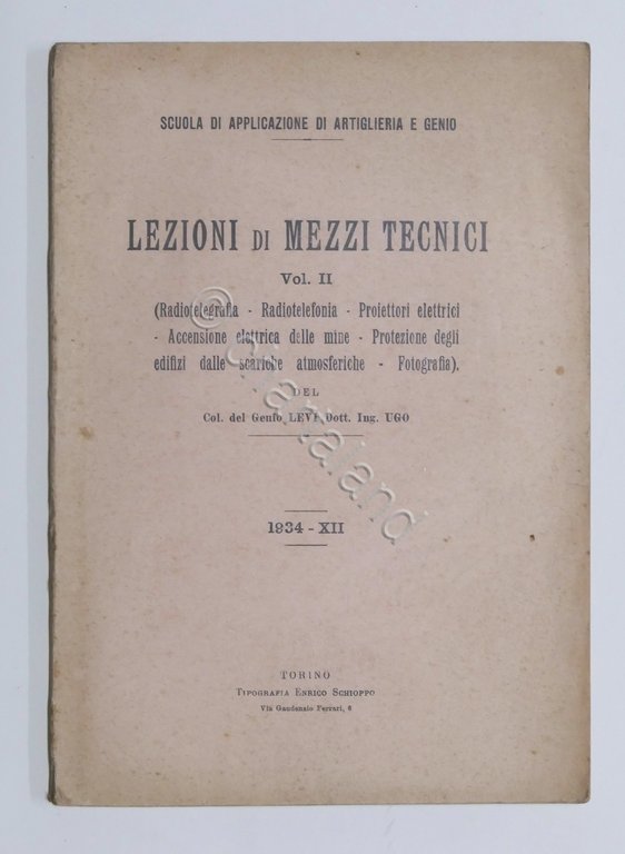 Scuola d'Applicazione d'Artiglieria e Genio Ugo Levi - Lezioni di Mezzi Tecnici - Vol. II - 1934 Pag. 183 con alcune illustrazioni. Copertina morbida - Testo in italiano. Condizioni buone.