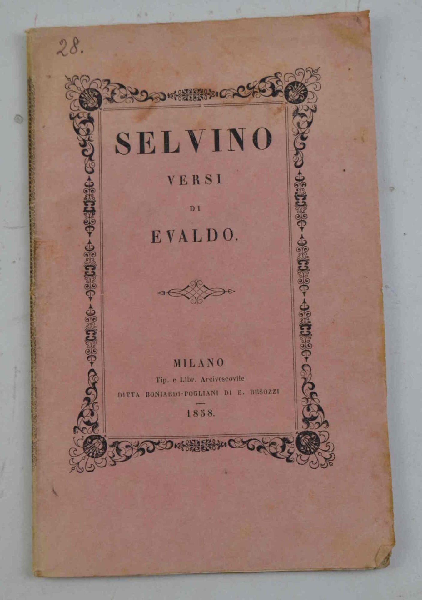 Cm. 19, pp. 40. Bross. orig. ornata. Buona conservazione. Raro opuscolo poetico dedicato a Selvino, paese della provincia bergamasca.